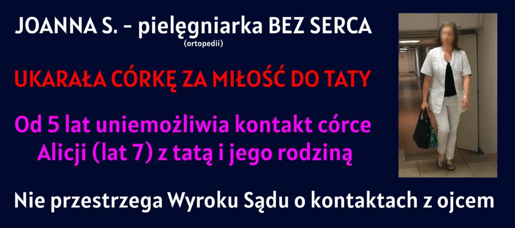 Joanna S. od ponad 5 lat uniemożliwia kontakt z dzieckiem ojcu i jego rodzinie. Nie przestrzega żadnych Wyroków Sądów.